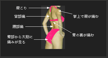 下の症状と合うものがあれば下の絵をクリックして、リンク先のページ内の該当項目を見て下さい。この中にない症状でお悩みの方はこちらへお進み下さい。